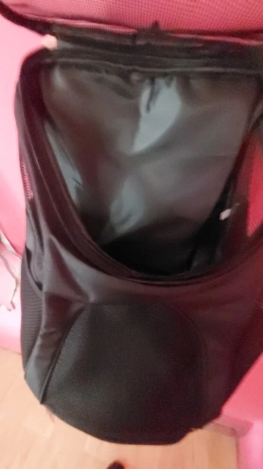 A small backpack more suitable for a smaller cat and in a sitting position. Just right for me.