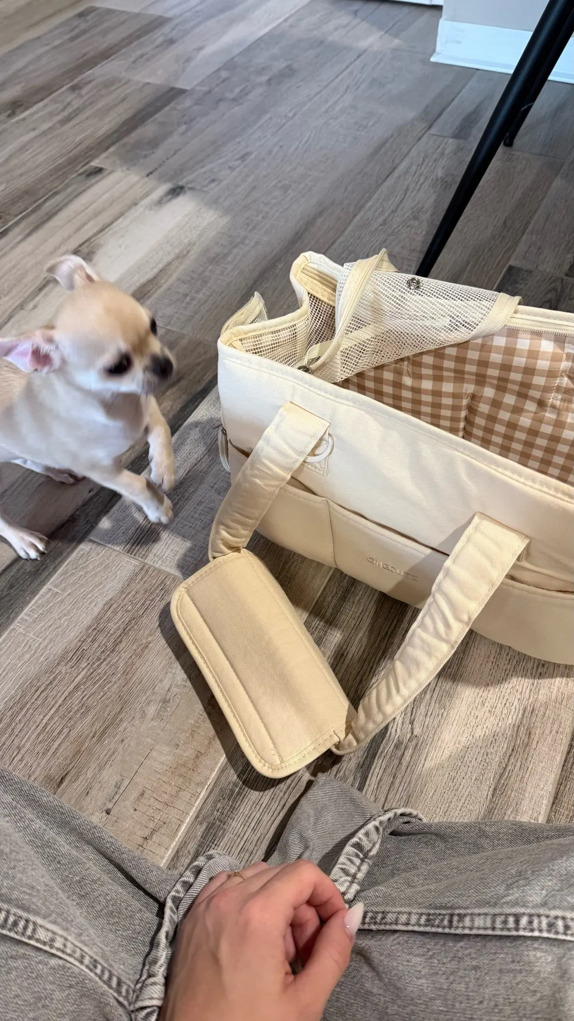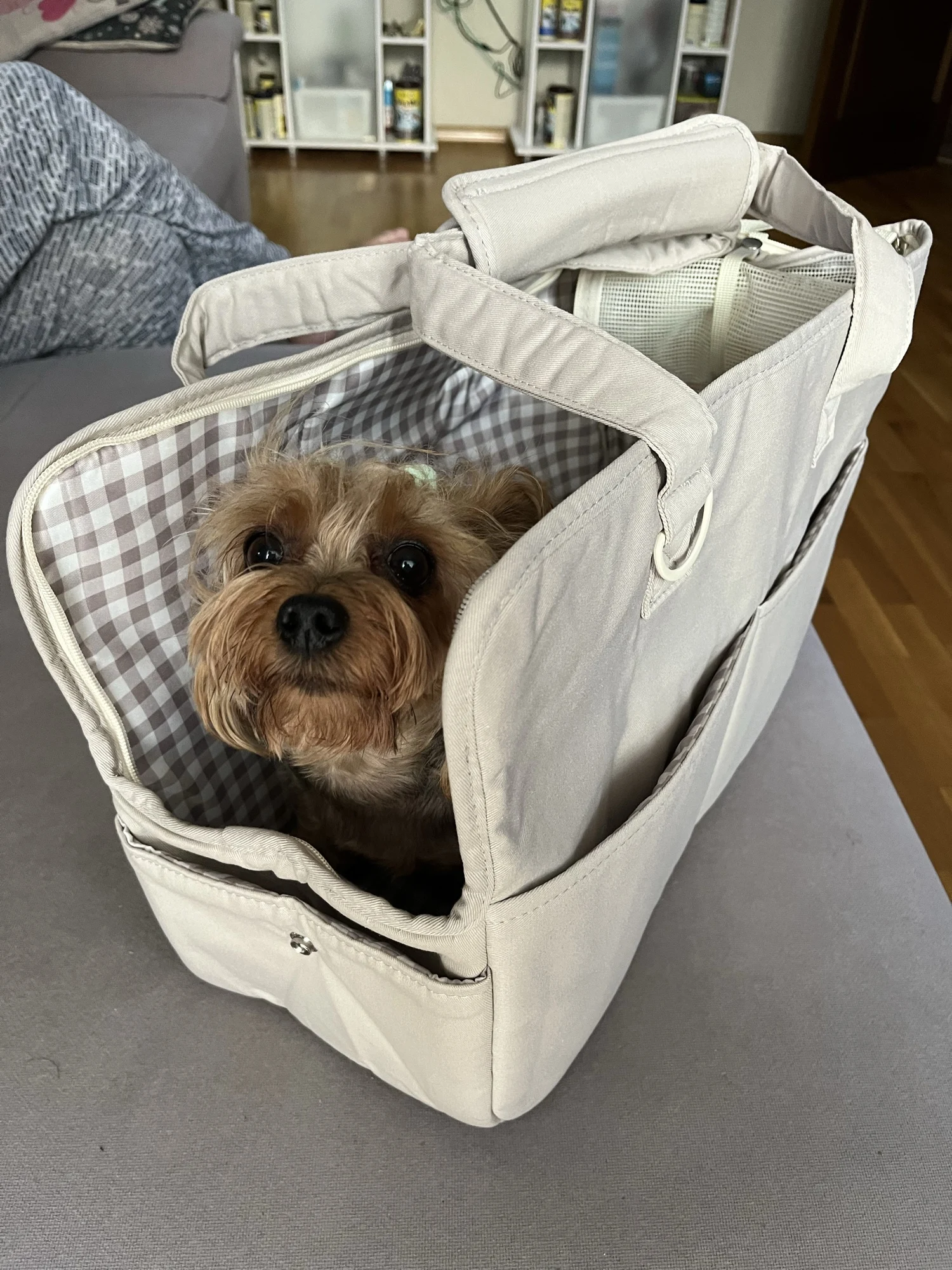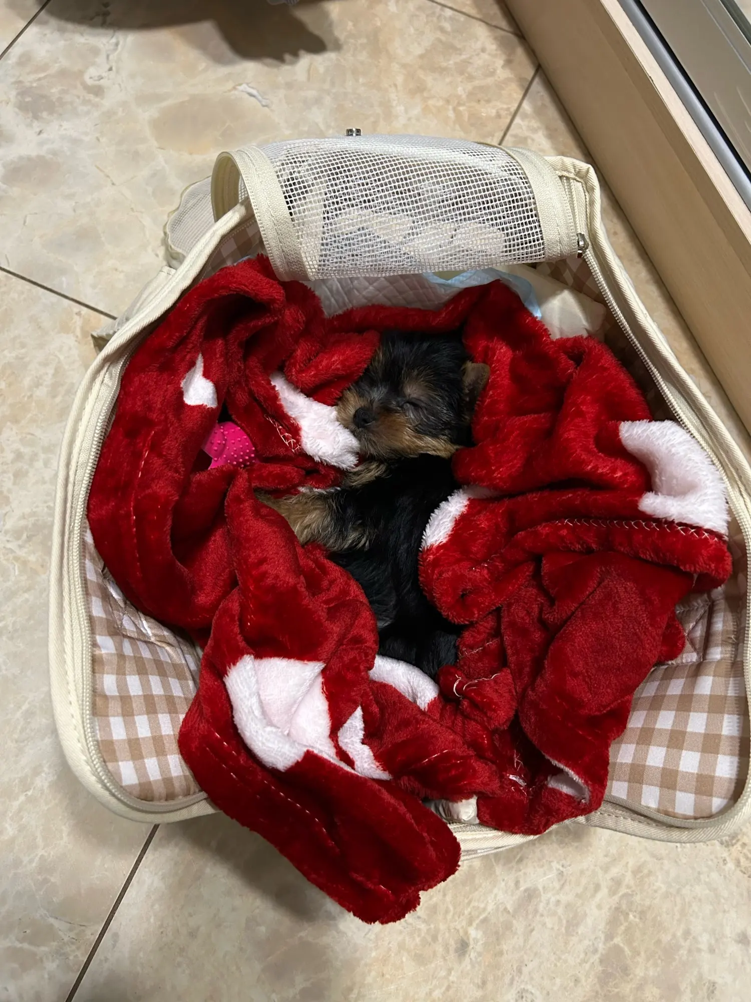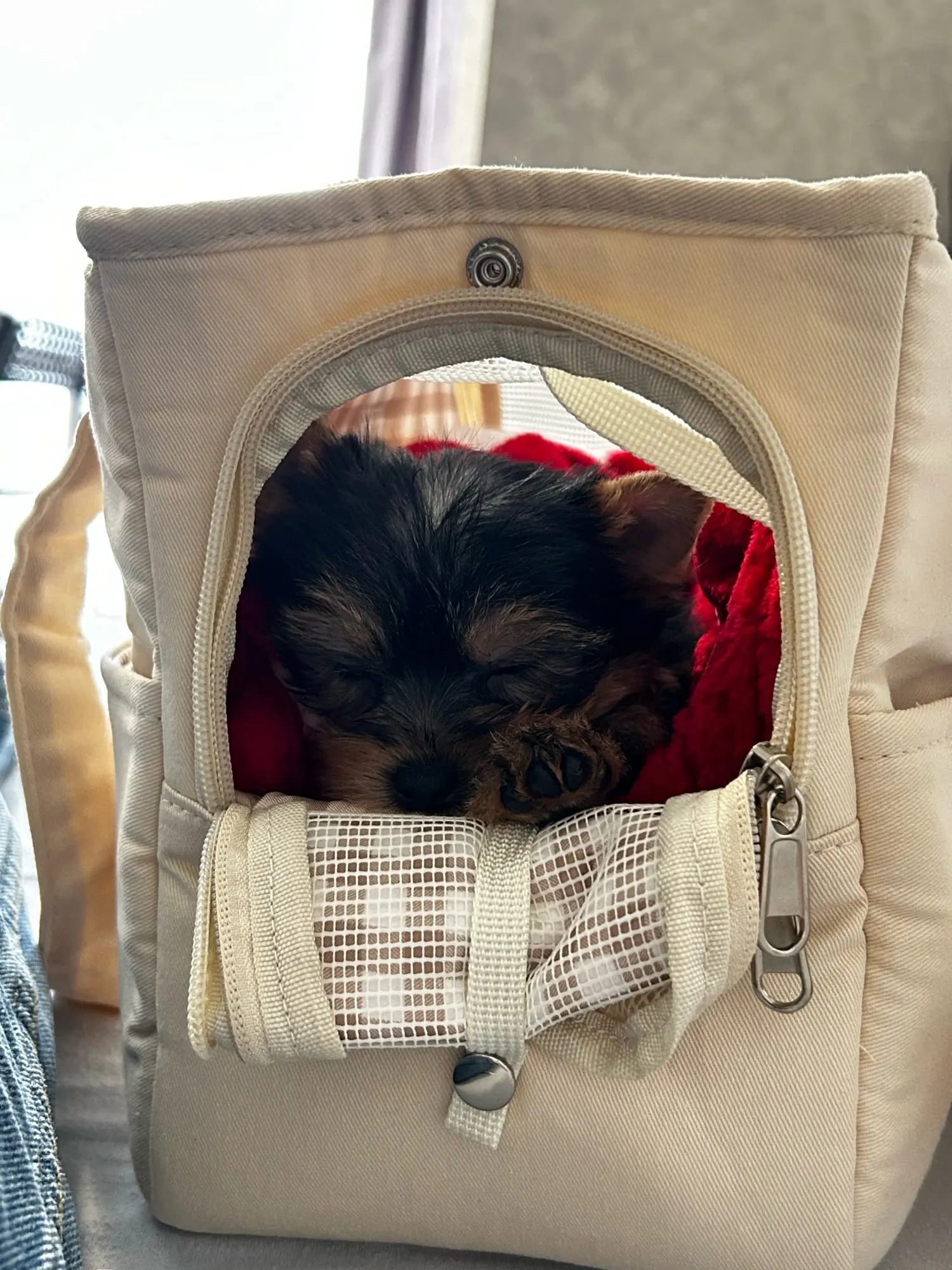 The carrying bag is simply superb (I also bought an extra pillow for it, but it wasn't included in this set). I took the smallest size, for a 2-month-old Yorkie it's great so far. π Good quality fabric, all details are made with great quality, it's comfortable to wear and the puppy fits perfectly in it, I am very satisfied with the purchase. However, I can give advice - take a size larger so that there is more space in it (because the pillow itself takes up a lot of it, and if you also add some extra blanket, it's even more). A huge plus for this seller - the product was shipped on time and I received it even before the specified deadline, thank you. ππ»